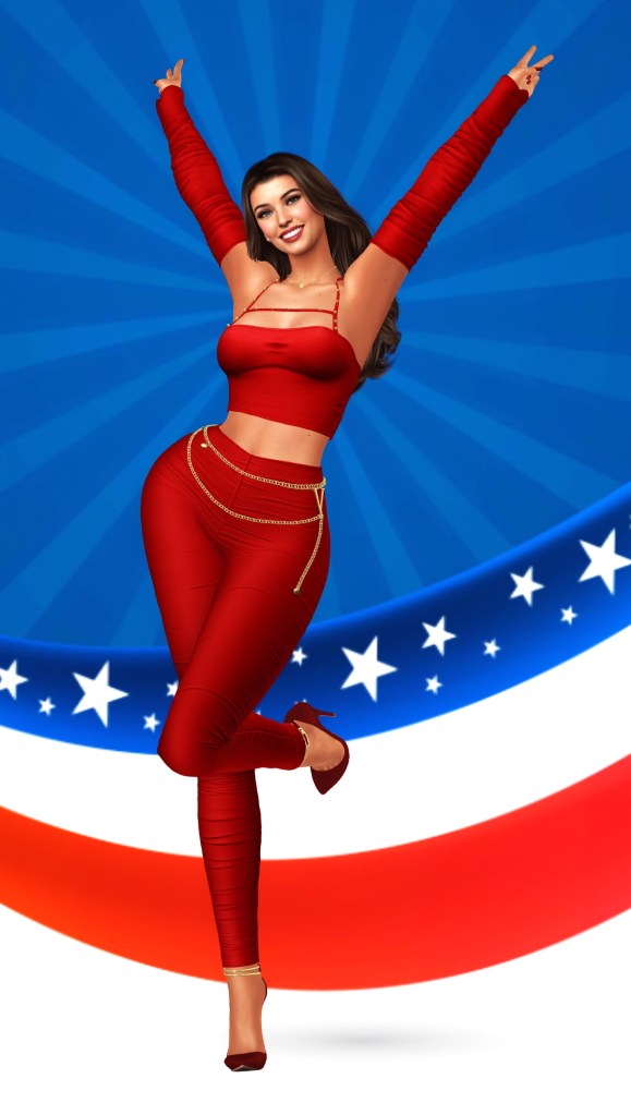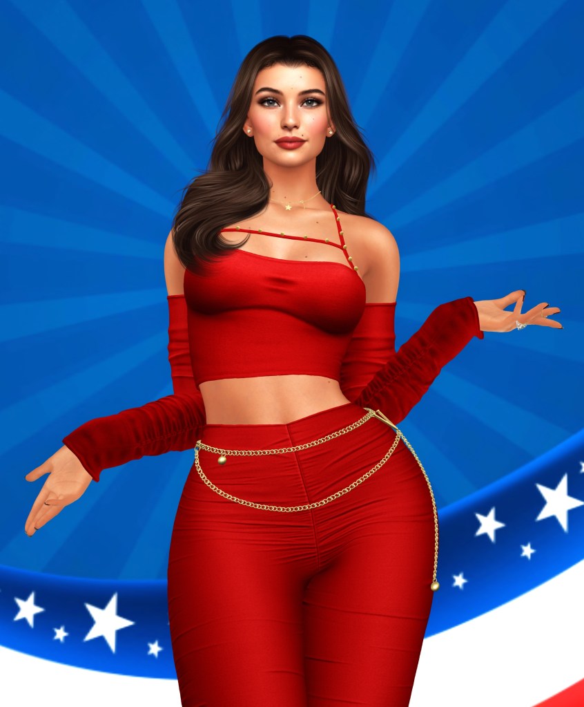 • Outfit: Vision – Anelia Top & Pants (chain belt included) – Color #6 Red